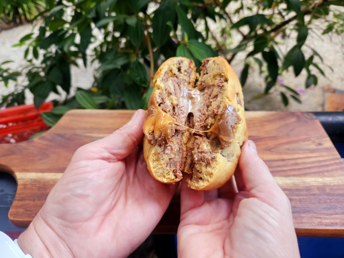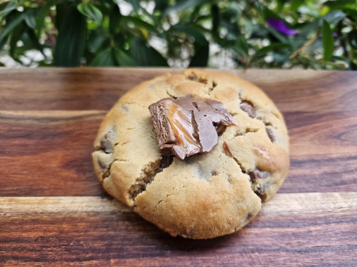 Lee's signature cookie dough loaded with belgian chocolate chips and stuffed with a mars bar in the middle.