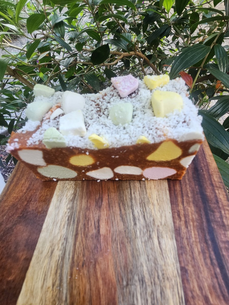 Lolly cake, also known as a lolly log, is a traditional New Zealand slice made with crushed biscuits, butter, condensed milk, and lollies. Great for the sweet tooth in your family